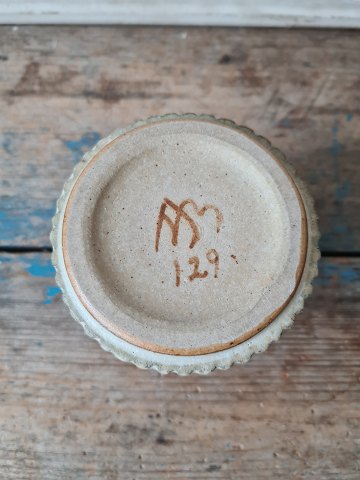 Arne Bang fluted vase in sand-coloured glaze No. 129 Height 8.5 cm. Diameter 8.5 cm. Perfect condition