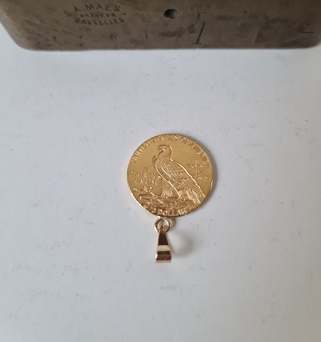 1915 Gold United States $2.5 Dollar Indian head quater Eagel mønt omlavet til vedhæng. 21,6 karat Diameter 17,7 mm.