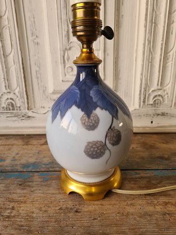 Royal Copenhagen Art Nouveau bordlampe dekoreret med humleblade og humleblomst, monteret på forgyldt bronze fod |