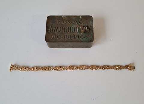 Vintage bracelet of 18 kt gold, braided gold adorned with gold pearls Stamped 750 Length 19 cm. Width 7.7 mm. Weight 17.3 grams.