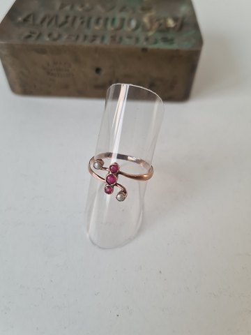 19th century gold ring with rubies and pearls Stamped with master stamp - acid tested to a vacancy of 8 kt. Ring size 49