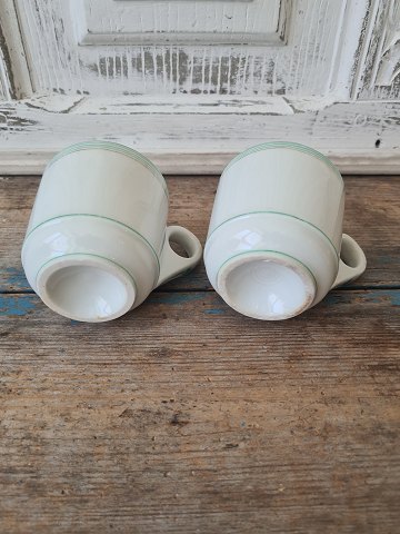 Par franske café brûlot kopper i kraftigt jern porcelæn dekoreret med grønne og guld striber Højde 8 cm.