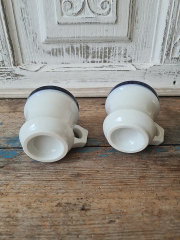Par franske café brûlot kopper i kraftigt jern porcelæn dekoreret med blå striber