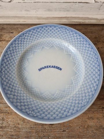 B&G Blå Tone kagetallerken med logo "Sparekassen"