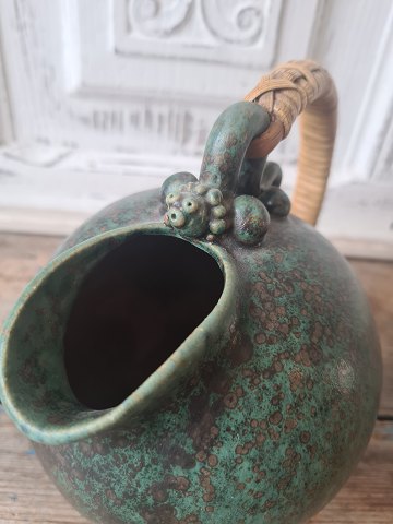 Arne Bang jug with bast handle. The jug has an incredibly beautiful green glaze. Signed AB - 151 Height 17 cm. Perfect condition