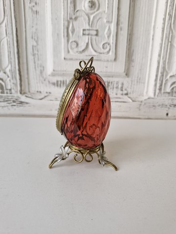Art Nouveau egg-shaped clock case in raspberry-colored glass with gilded mounting