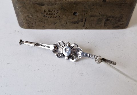 Georg Jensen sølvbroche med grøn sten Stemplet GJ - 830s - Denmark Produceret mellem 1930-45 Længde 5,5 cm. Bredde 1 cm.