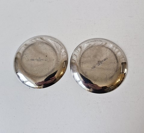 Frantz Hingelberg pair of glass trays in sterling silver and blue enamel. Stamped: F.Hingelberg - Aarhus - Sterling - Denmark - 925s.