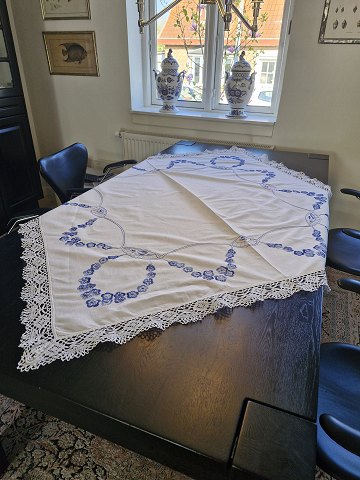 Tablecloth beautifully embroidered with empire pattern 142 x 142 cm.