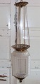 Smuk hvid ampel med ætset blomster dekoration fra Fyns glasværk 1903. Højde på selve glasset 41cm. Total højde 83cm.