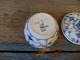 Royal Copenhagen Musselmalet riflet sukkerdåse med låg No. 239, 2. sort. Højde 7,5cm. Diameter 9cm.