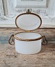 1800s candy box in white opal glass with gold-plated bronze mounting - rare small size. Dimensions 5.2 x 7.5 cm. Height 6.5 cm. A small defect in the glass - see picture.