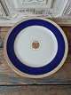 Set på 6 B&G dækketallerken dekoreret med kongeblå fane, græsk evighedsmønster og våbenskjold i guld 26 cm.