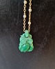 Necklace in 18 kt gold with beautifully carved jade and Akoya pearls