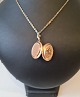 1800tals medaljon med 6 ægte perler i lang kæde i 14 kt.