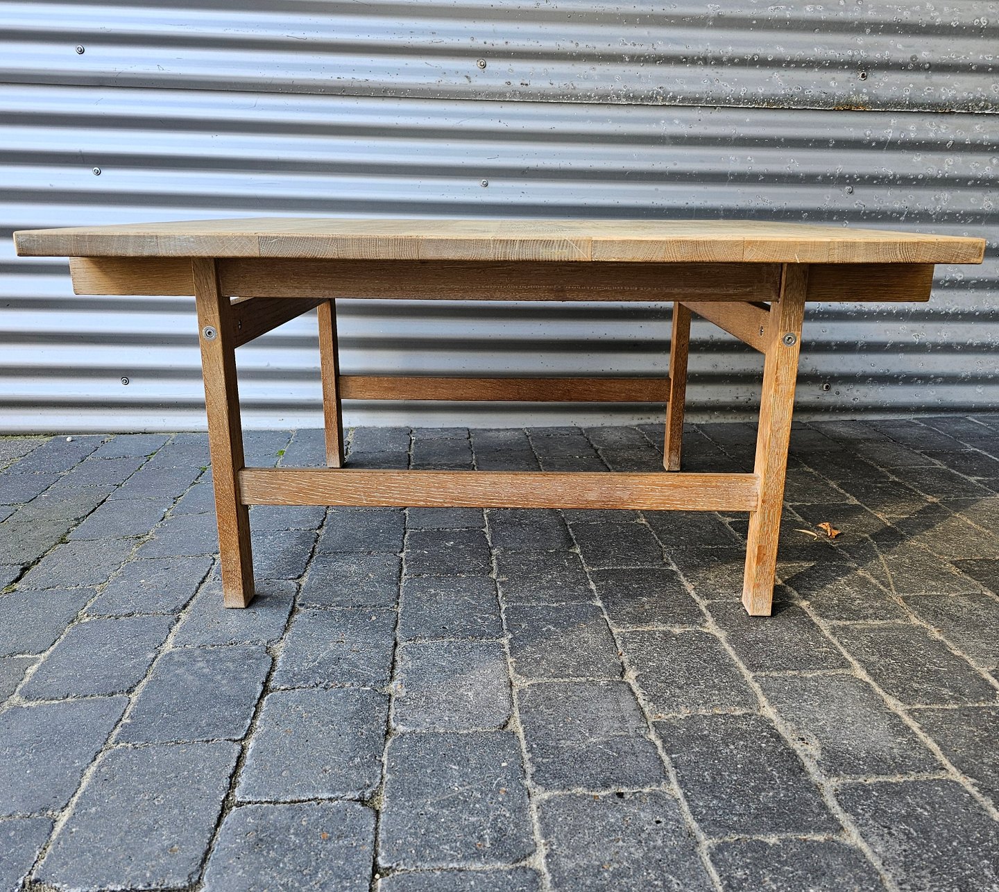 Sofabord i massivt sæbebehandlet egetræ designet af Hans Jørgen Wegner. Kvadratisk sofabord i rigtig fin stand.