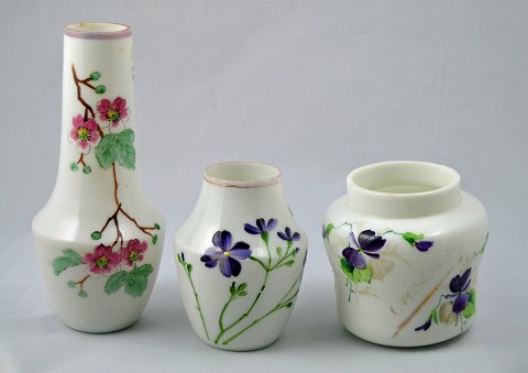 Smukke blomstervaser fremstillet på Fyns glasværk ca. år 1903 efter design af Brendekilde.