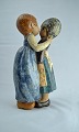 Figur i glaseret keramik med motiv af to små kindkyssende piger
