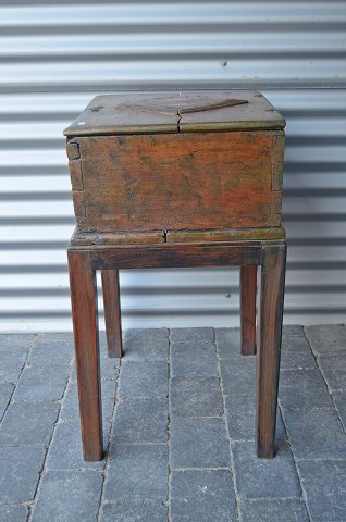 Samlet højde: 73 cm. hvoraf kisten højde er 23 cm. Bredde: 55 cm. Dybde: 42 cm. Pris: 15.500 kr.