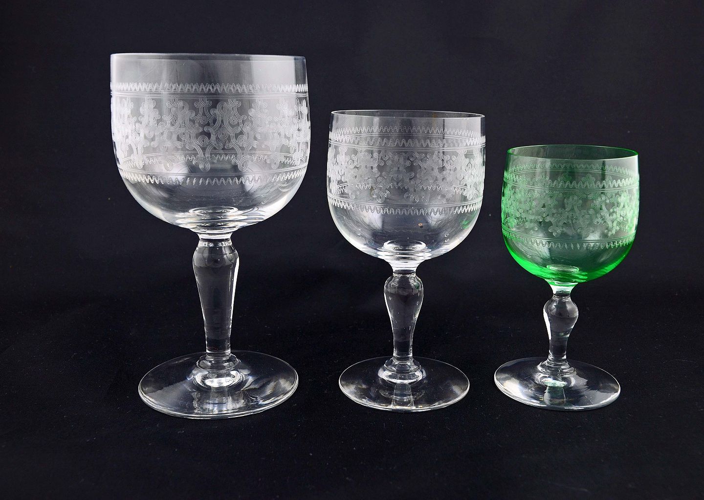Glasservice til 12 personer med gouillocheret bort fra 1920'erne.
