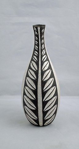 Høj vase (nr. 5533) med bladmotiv. Højde. 22 cm. Ø: 9 cm. kr. 300,00