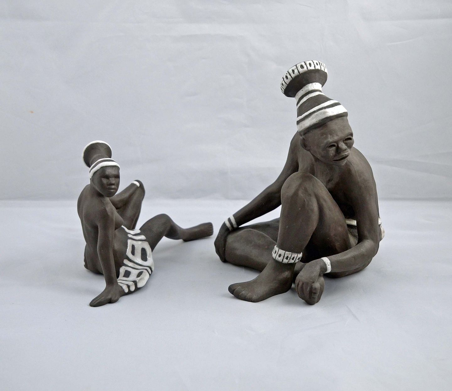 To keramik figurer med motiv af afrikanske kvinder fra Michael Andersen & Son Bornholm Keramik. Begge figurer er i meget pæn stand.