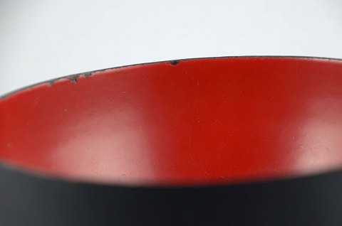 Krenit skål med mørkerød emalje. Skålen er i pæn stand.