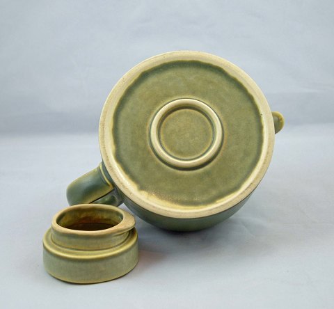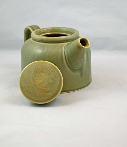 Tekande i stentøj. Kanden er i meget pæn stand. H: 10 cm (m/låg 11,5 cm). L: 21 cm.