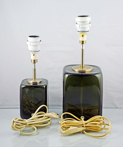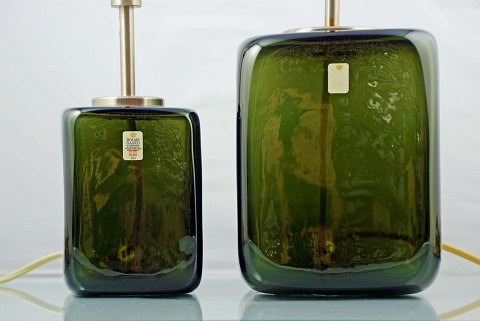 Holmegaard Kubus bordlamper i Olivengrå glas. Lamperne er i pæn stand. Grøn glas.