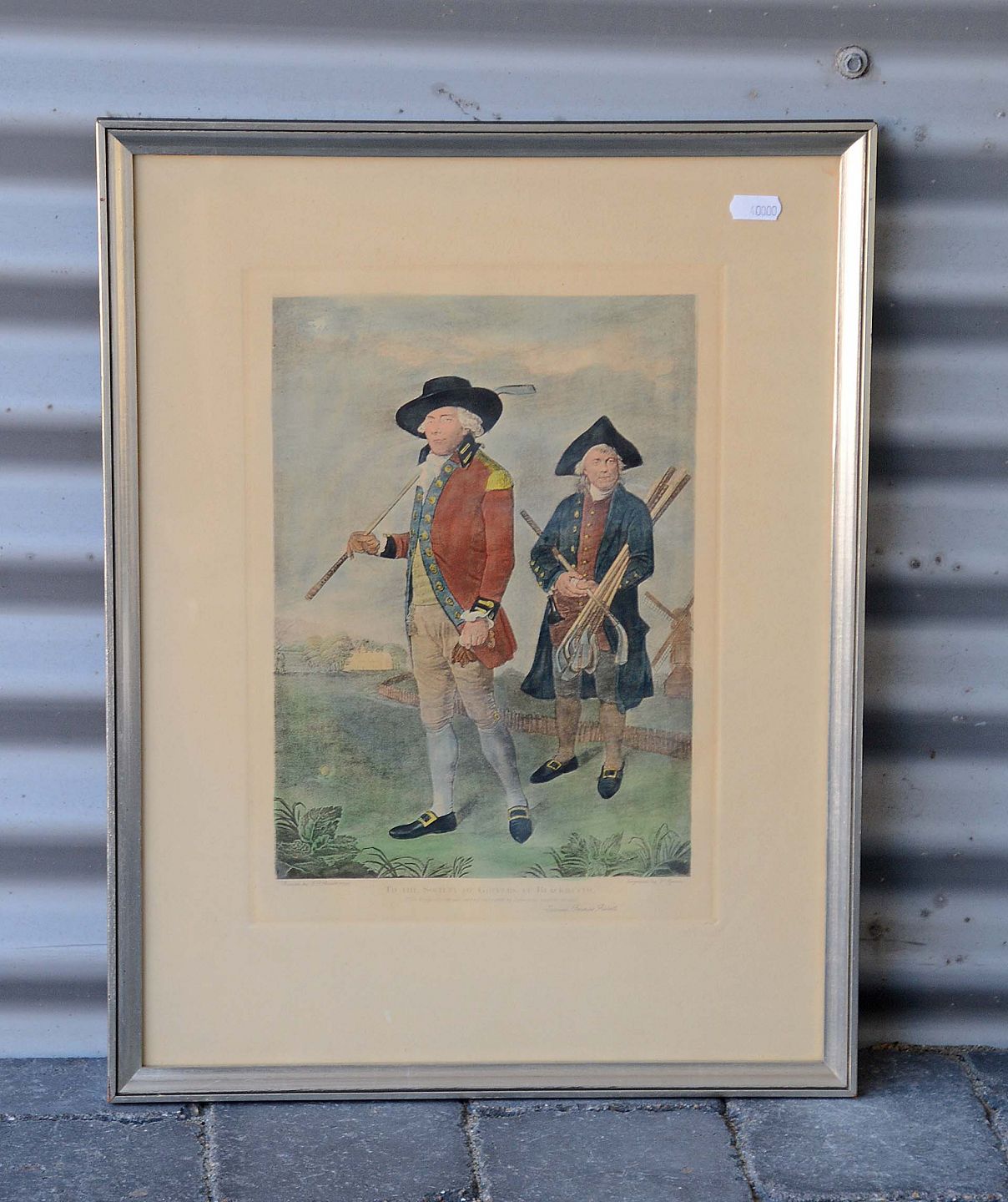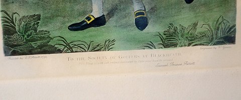 Tryk af maleriet "To the society of goffers at Blackheath" af S.G. Abbott, 1790. Signeret " Samuel Francis Abbott". indgraveret af V. Green. Meget pæn stand.