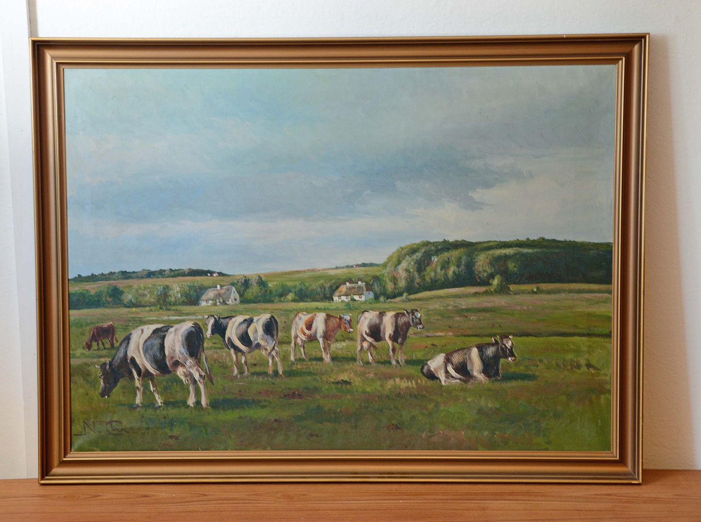 Landskab. Maleri på lærred af Niels Peter Christiansen. Signeret " N. Chr." Meget pæn stand.