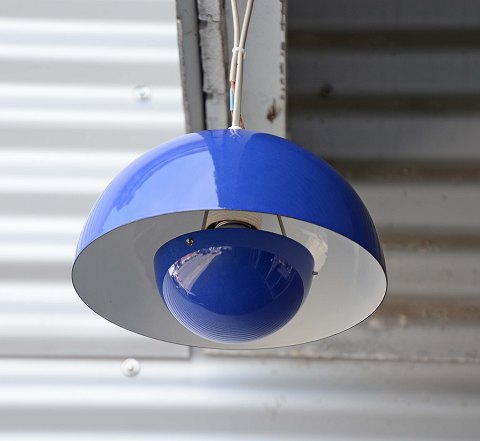 Flowerpot pendel. Designet af Verner Panton i 1968 for Louis Poulsen. Blå emaljeret metal. Aldersrelaterede brugsspor - Enkelte små rust plamager i kanten. Pæn stand.