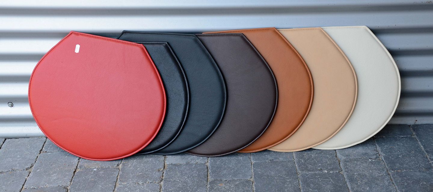 Forskellige sædehynder i læder til Arne Jacobsens Syverstol og Myren stol.
