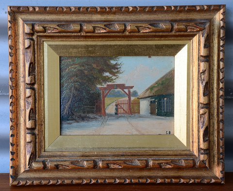 Maleri (T.v.) Signeret LB. Mindre afskallet område på maleriet. H. 23 cm. B. 27,5 cm. Solgt