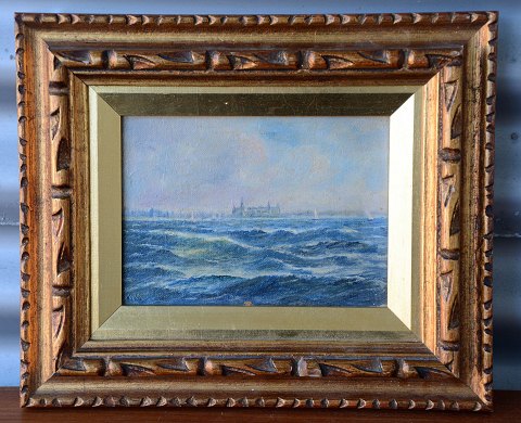 Maleri (T.h.). Usigneret. Afslag på rammen. H. 29,5 cm. B. 25 cm.