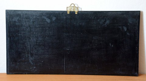 Orientalsk sortlak motiv på træplade og med gylden metalfigurer. Brugsspor på ramme og motiv. Pæn stand.