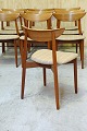 10 stk. Harry Østergaard stole i teaktræ med stofbetrukket sæde. En lille fejl ved ryglænet på en enkelt stol. Pæn stand.