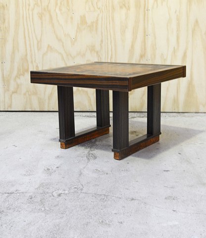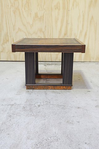 Sofabord i palisander med topplade og sokkel omsluttet i kobber med egyptiske motiver. Brugsspor - mindre hak i bordkanten samt alm. brugsspor.