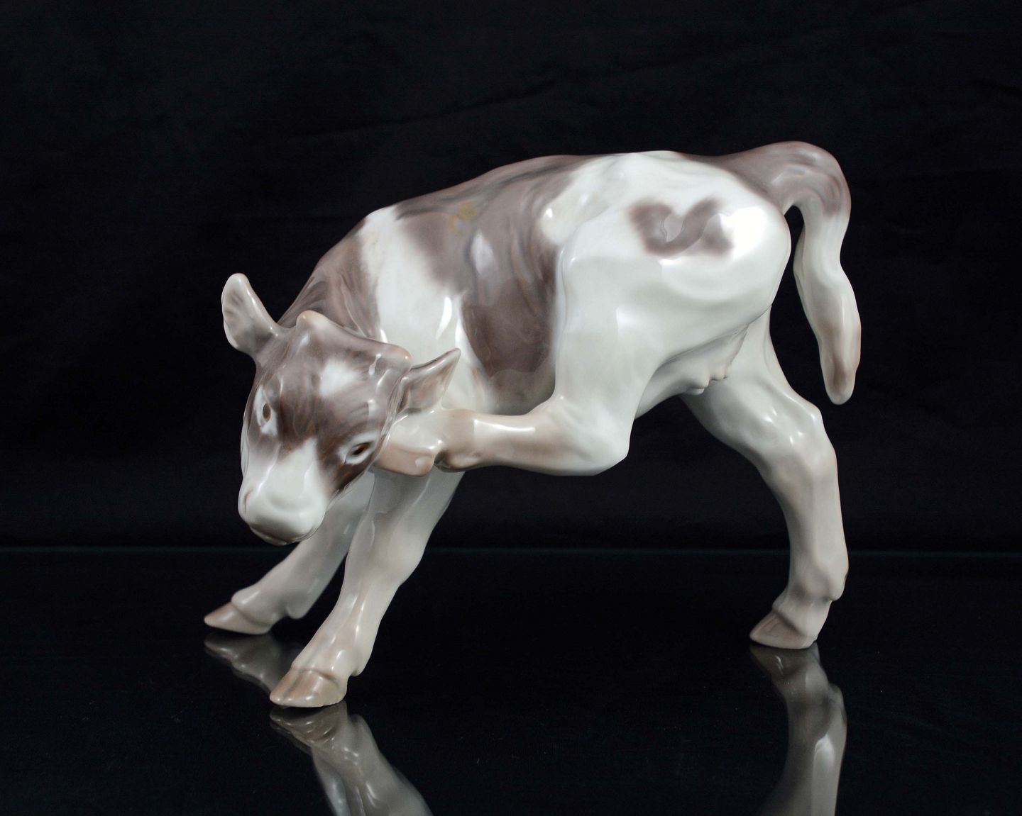 Kalv, der klør sit øre med brune aftegn(nr.1826) af Knud Kyhn for Bing og Grøndahl. Intakt og 1. sort. Arkivfoto