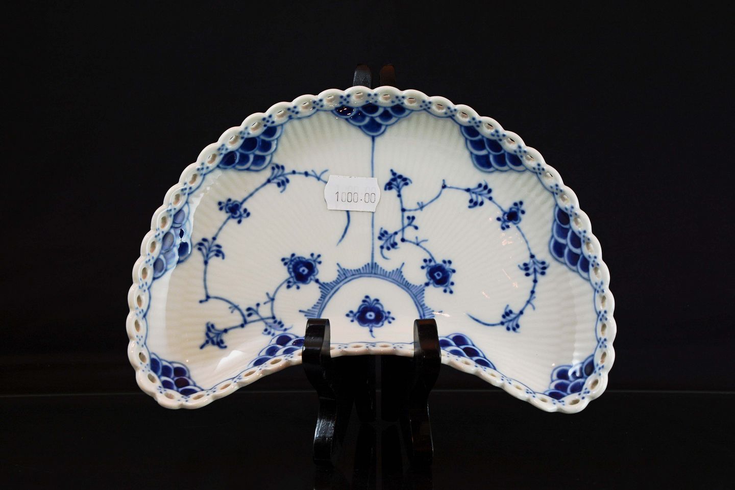 Stor halvmåneformet asiet (1/1173) i helblonde musselmalet fra Royal Copenhagen. 1. sort.