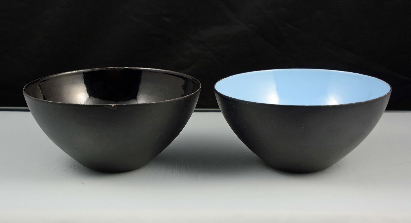 Krenit skåle med lyseblå emalje.