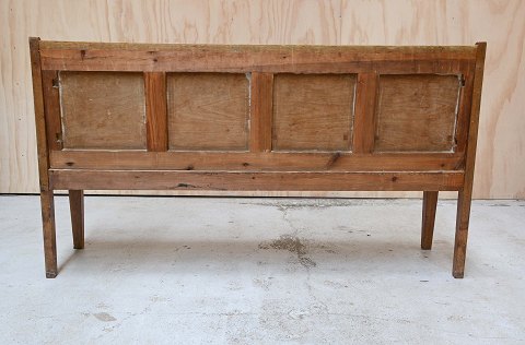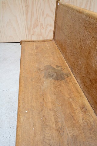 Bænk i eg fra ca. 1920érne. Fremstår med aldersrelaterede brugsspor.