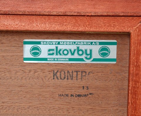Lakeret palisander skænk med fem skuffer, to låger og 4 hylder fra Skovby Møbelfabrik. Intakt med få overfladiske ridser.