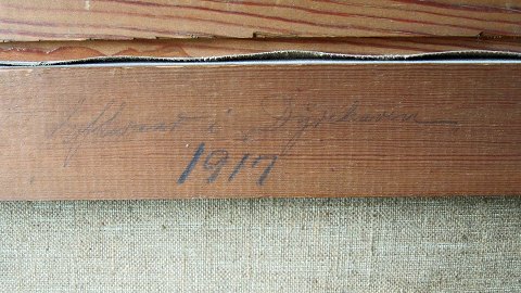 Olie på lærred. Naturmaleri i gylden ramme med motiv af træer af Signeret H. Thorine er pseudonym for Kaj Drews