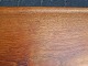 Langt serveringsbræt i teak på stel i sortlakeret metal. Fremstår med brugsspor på brættet.