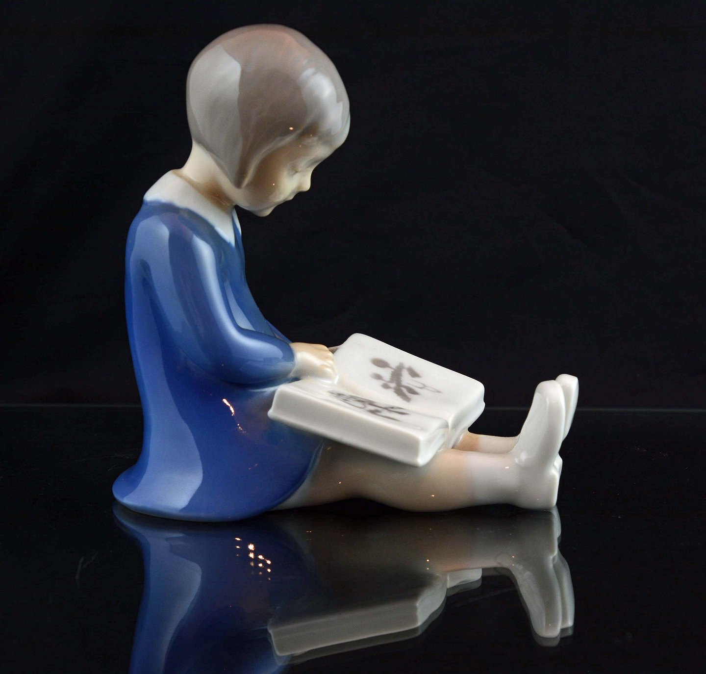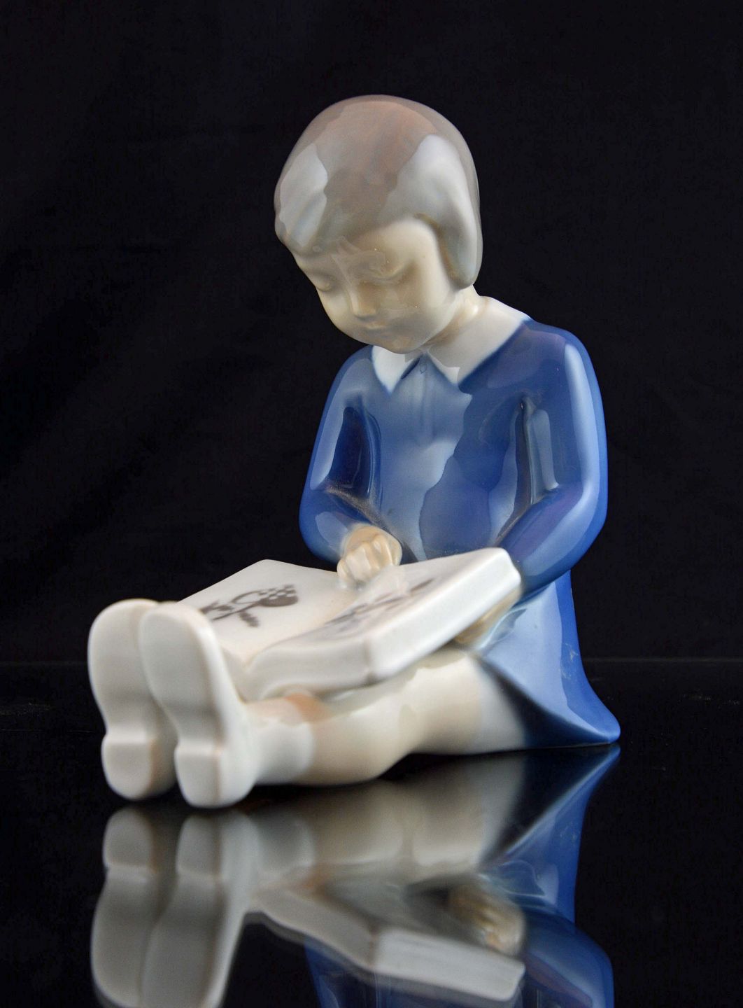 Porcelænsfigur 'Min første bog' (nr. 2247) fra Bing og Grøndahl.