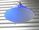 Loftslampe i glas med med messing ophæng. Pendlen er udformet i hvidt glas under blåt overfangsglas. Fremstår med mindre brugsspor.