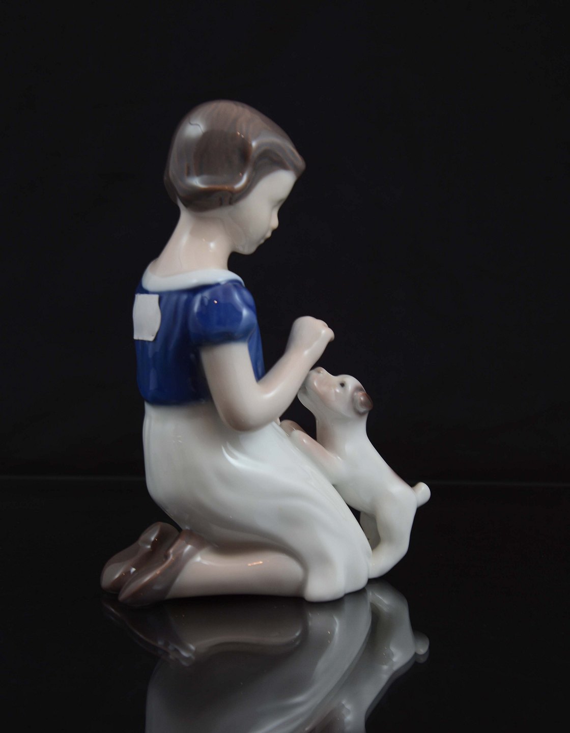 Pige med hundehvalp (nr.2316) af Vita Thymann for Bing og Grøndahl. intakt. 1. sort. H. 13 cm.
