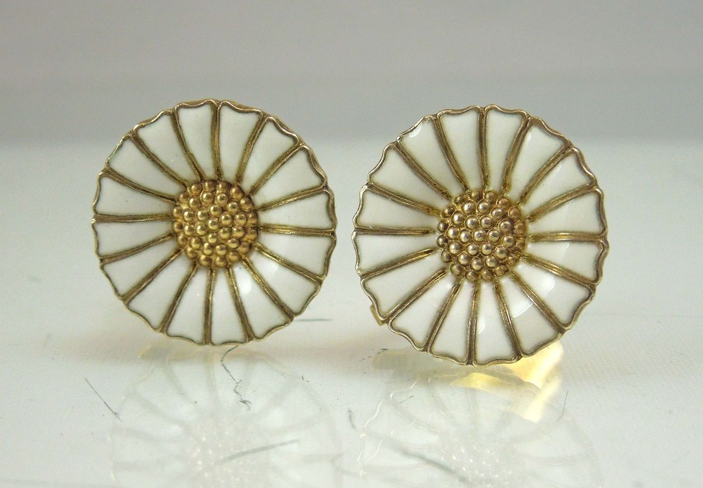 Marguerit øreclips Forgyldt sølv med hvid emalje