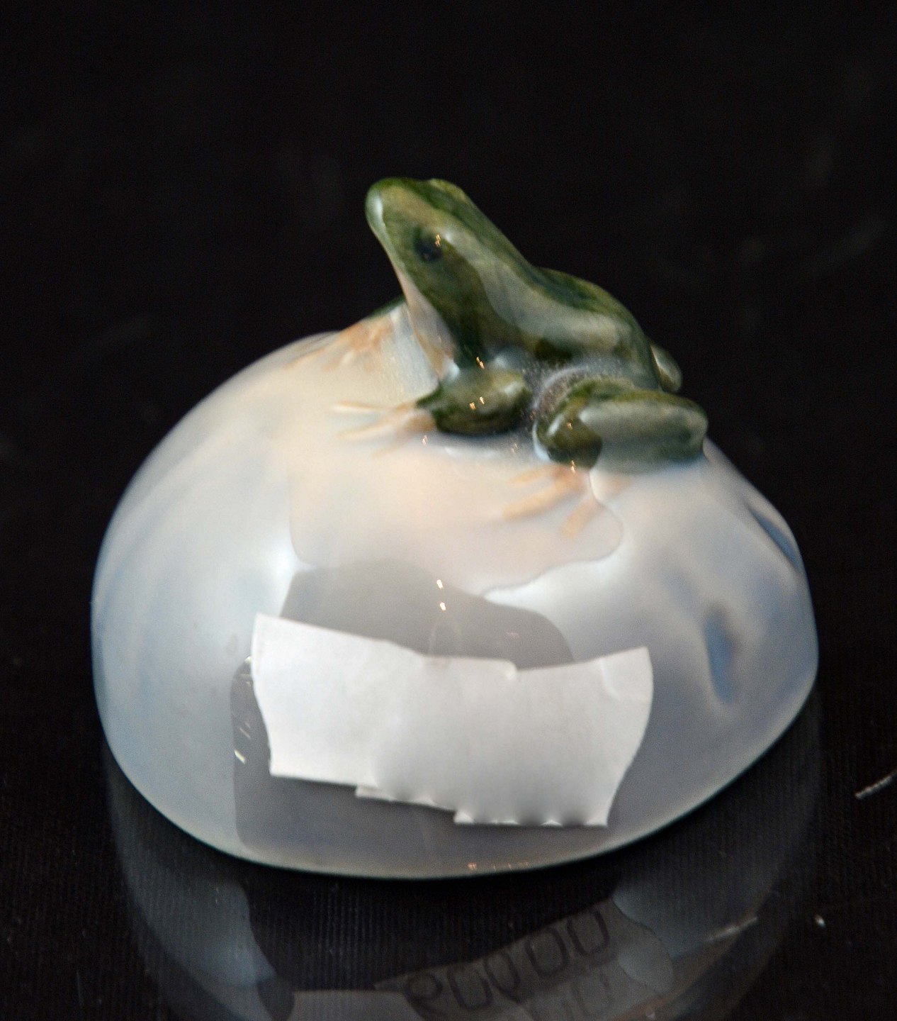 Figur af lille frø på sten (nr. 507) fra Royal Copenhagen.